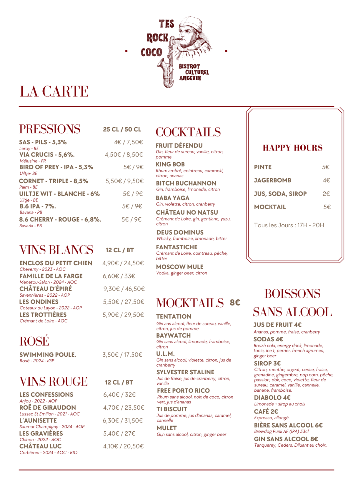 Découvrez notre sélection de boissons fraîches ainsi que nos propositions culinaires.